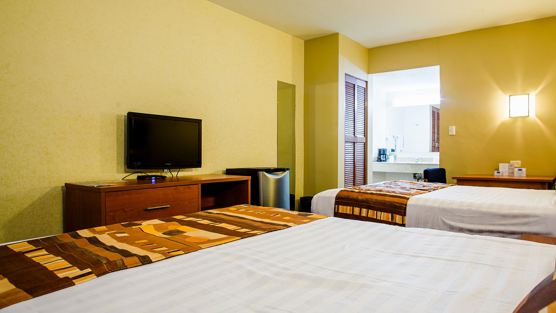 Descanse y duerma como en casa en una de las espaciosas y modernas habitaciones de American Inn Hotel & Suites Delicias. Su agradable decoración e iluminación se unen a una amplia serie de amenidades para convertirse en excelentes opciones de hospedaje en Delicias, Chihuahua.